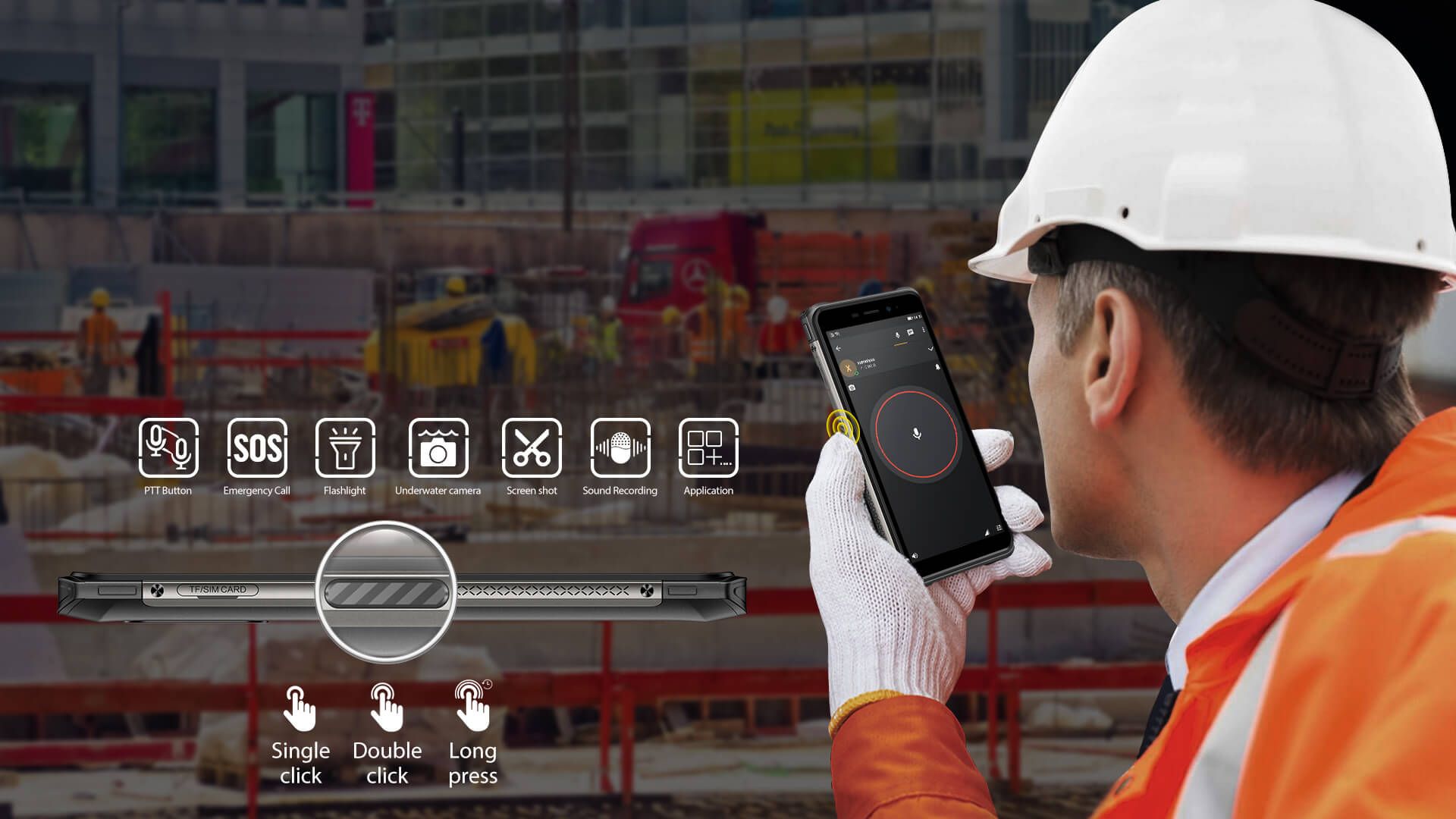 Bên cạnh phải thiết bị là nút chỉnh âm lượng và nút nguồn, ở phía bên cạnh trái có một khe cắm thẻ có thể chứa đồng thời hai thẻ Nano-SIM và một thẻ Micro SD. Bên cạnh trái cũng có một phím tùy chỉnh để thiết lập phím tắt, ví dụ như khởi động Zello, nền tảng PTT, cho phép điện thoại hoạt động như một bộ đàm. Ngoài ra điện thoại còn có cổng sạc Type-C và cổng cắm tai nghe 3.5 mm.