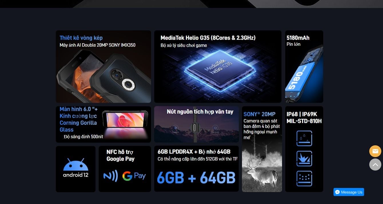 DOOGEE S61 : CAMERA HỒNG NGOẠI CHỤP ĐÊM SONY® IMX350 20MP -RAM 6GB - ROM 64GBGB- THIẾT KẾ NGUYÊN KHỐI ,BỀN VÔ ĐỐI - CHỐNG NƯỚC CHỐNG SỐC CHUẨN IP69K