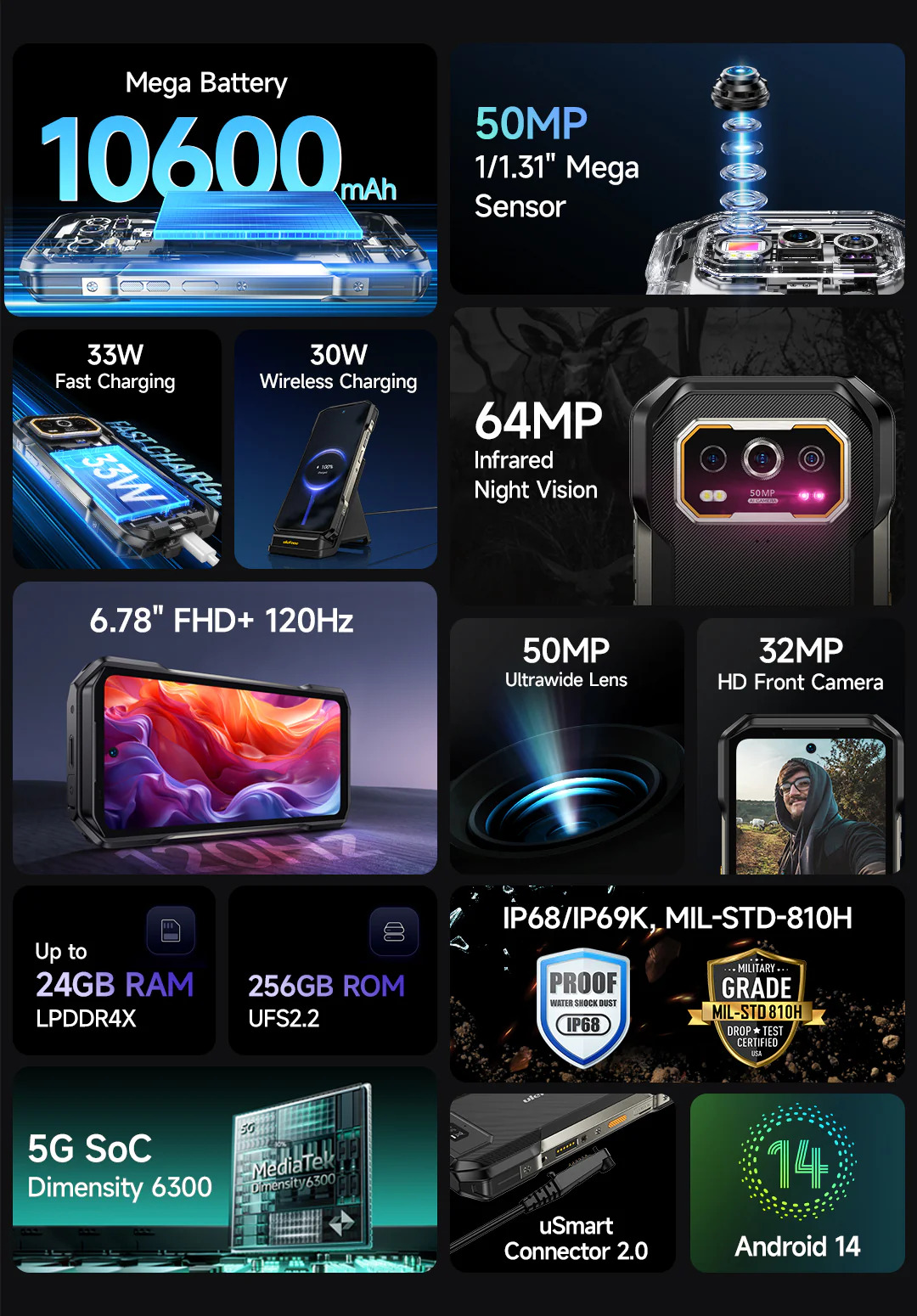 Điện thoại OUKITEL WP53 PRO | 24GB + 256GB,Pin khủng 11000mAh Siêu bền chống nước chống va đập